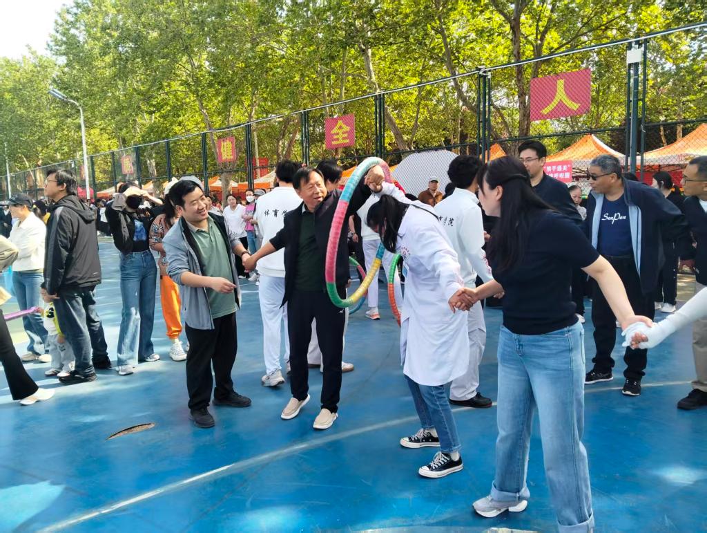 个人项目中,掷实心球赛场选手们凝神聚力,奋力投掷;足球射准区域里,女教师灵活射门、男教师凌空劲射,各显风采;沙包投准处,精准的抛投引得阵阵欢呼。三大团体项目更是将氛围推向高潮:“携手通关”智传呼啦圈,队员们手拉手默契配合,巧妙传递呼啦圈;“并驾齐驱”毛毛虫大比拼,两组队员交替奔跑,摔倒后迅速调整状态继续前行;“你追我赶”跳大绳,摇绳与跳绳节奏精准,“8字绕环”跳法行云流水。经过激烈角逐,体育学院分工会、医学院分工会、机电工程学院分工会、计算机与信息工程学院分工会、教育科学学院分工会、物理与电子工程学院分工会凭借出色的组织表现荣获优秀组织奖。